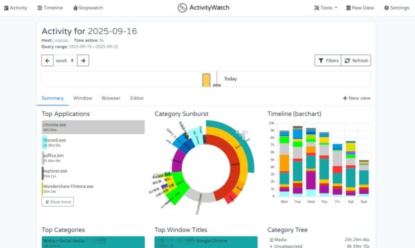 PC利用時間可視化ツールの「ActivityWatch」を導入してみた。 とにかく時間の使い方に悩んでいるので、タスク管理ツールなどいろいろ試している。 その一環で、そもそも自分がどういったことに時間をかけているのか・かけていきたいのかを考えようと思った。 そこで「Activit...